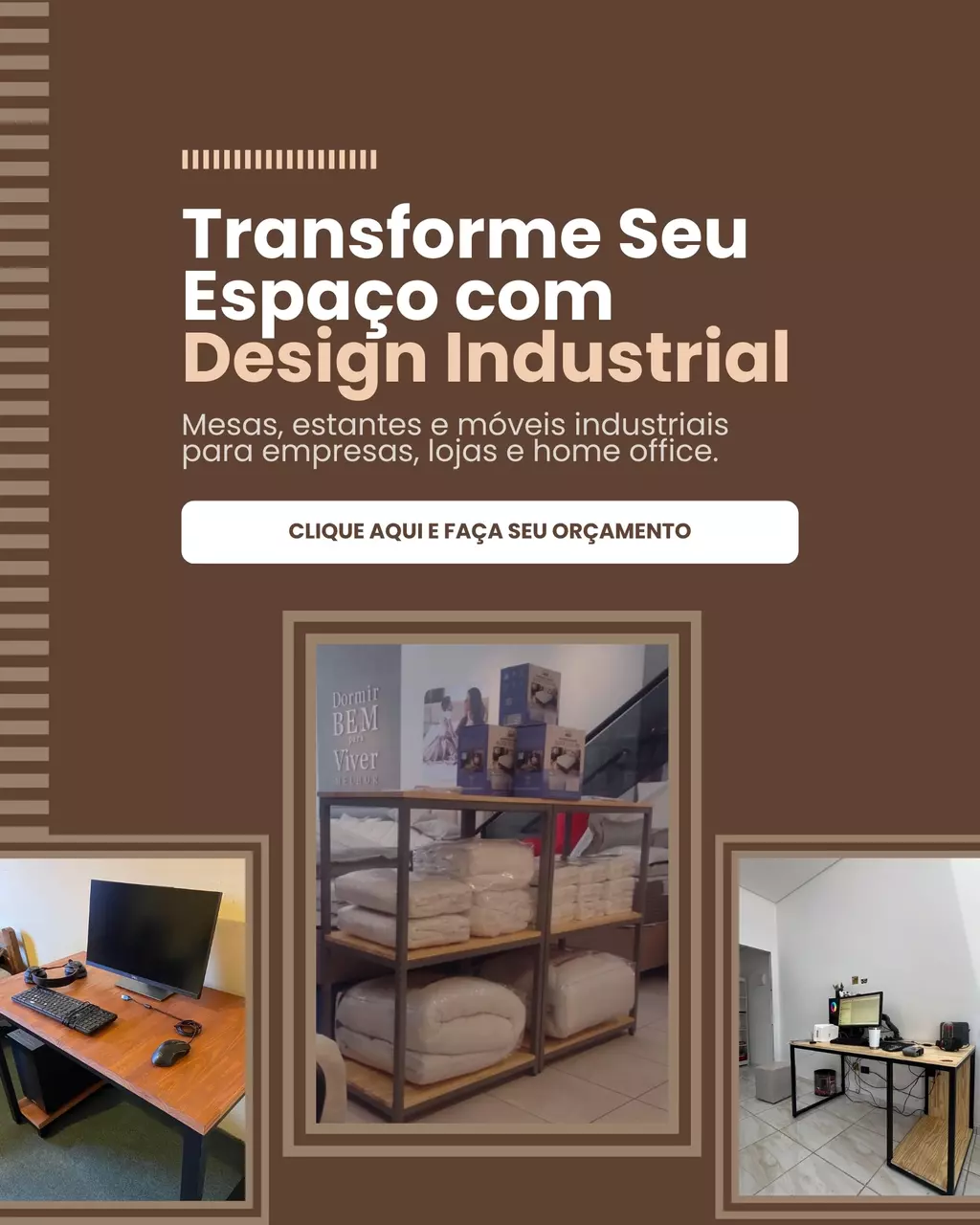 Banner de Móveis Industriais Sob Medida | Mesas, Estantes e Bancadas